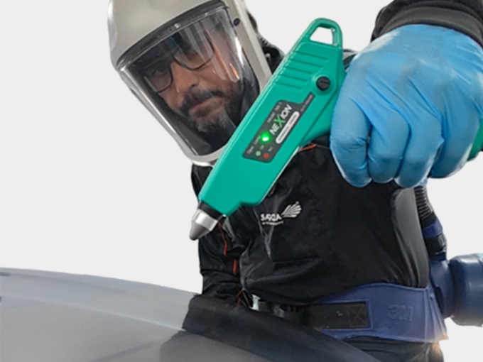 NEXION은 빠르게 균일한 + , - 이온들을 발생시켜 도장표면의 정전기를 중화 제거시킵니다.
